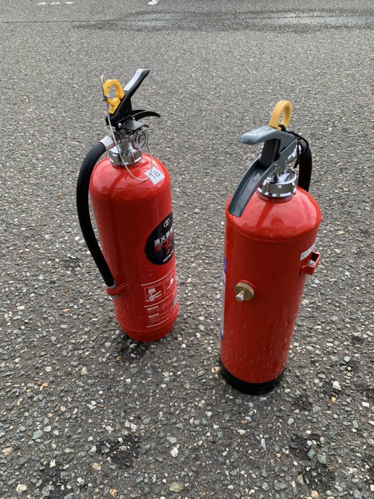 消火器を用いて消火訓練をしたり、消防設備にについての説明、避難経路の確認などなど…